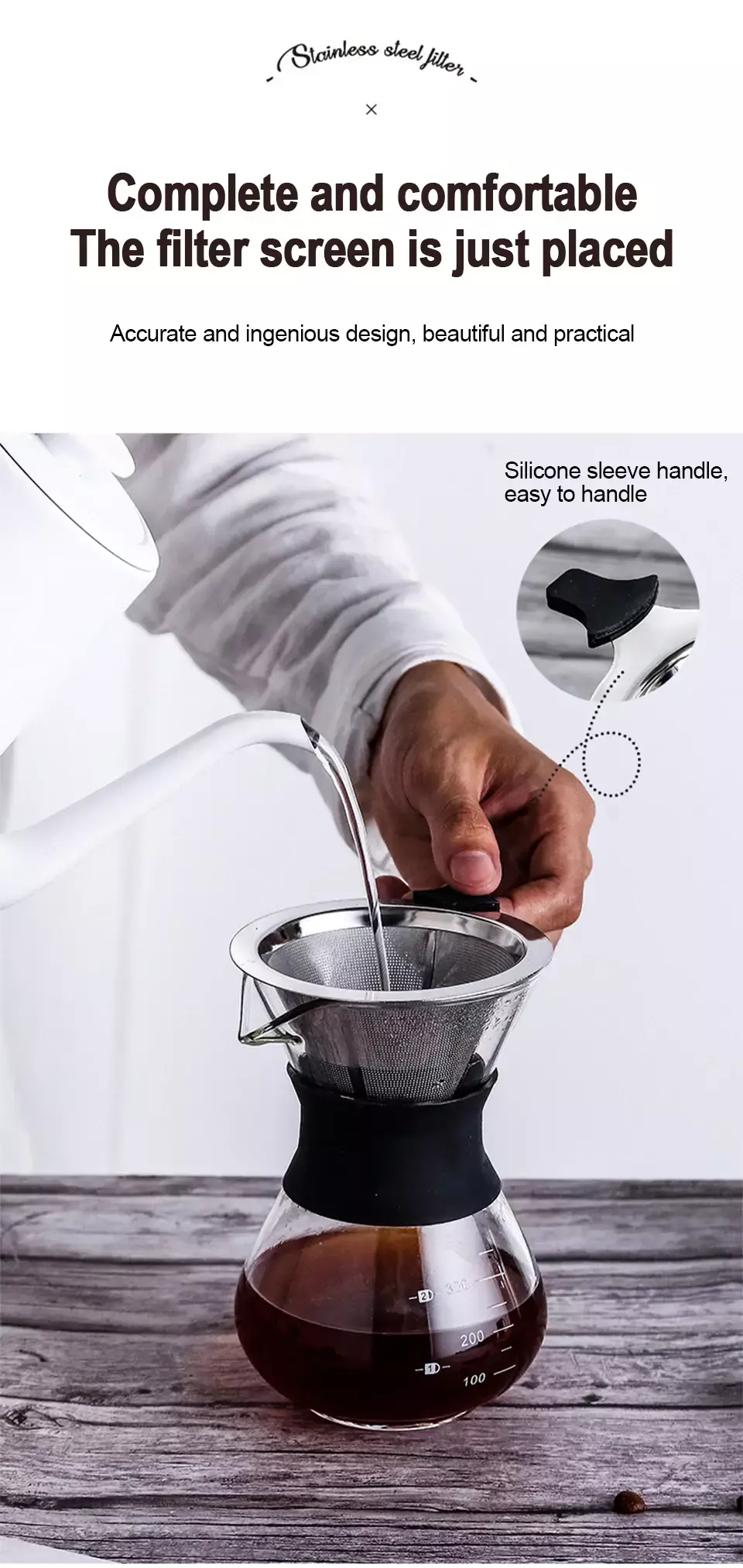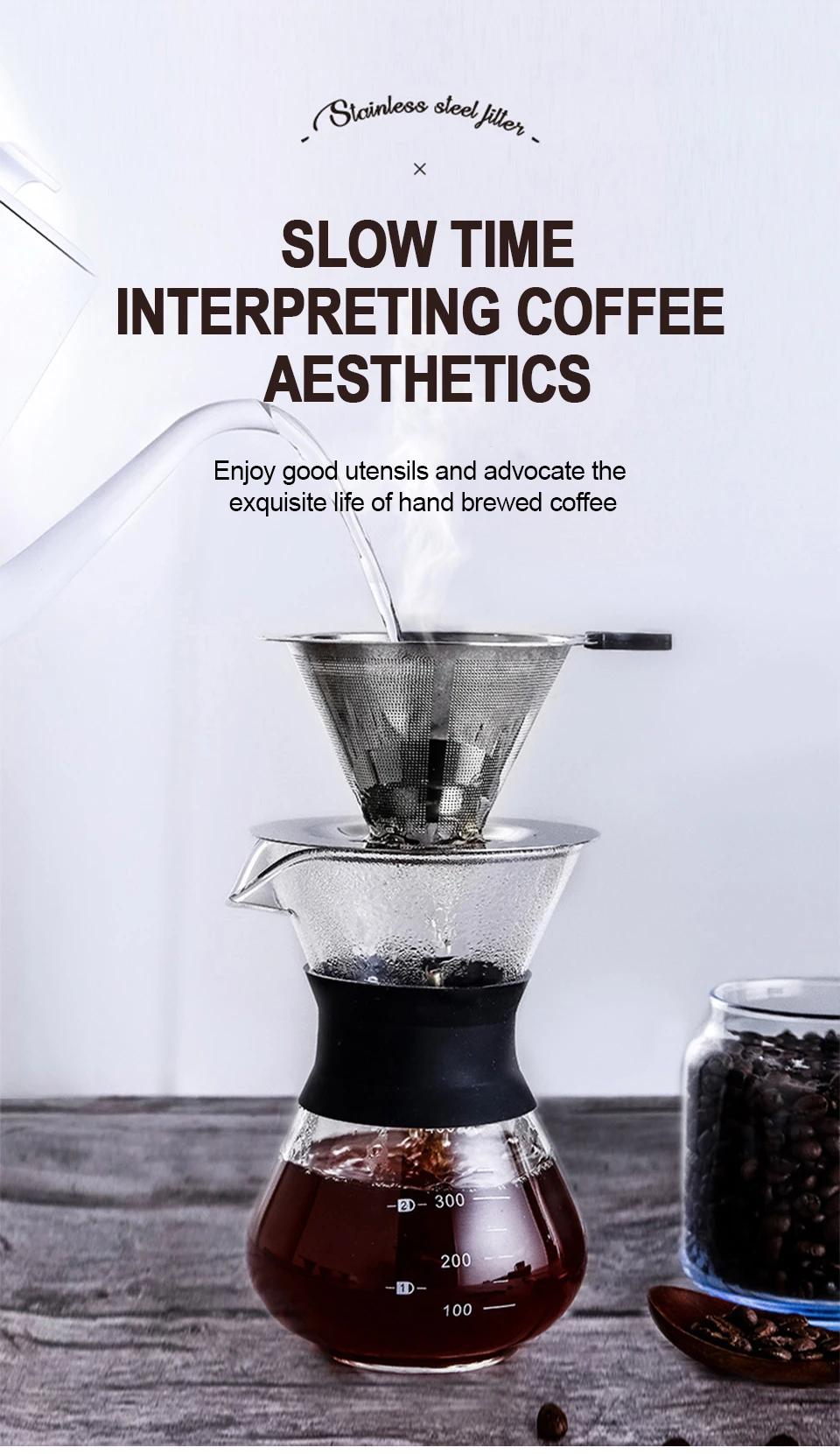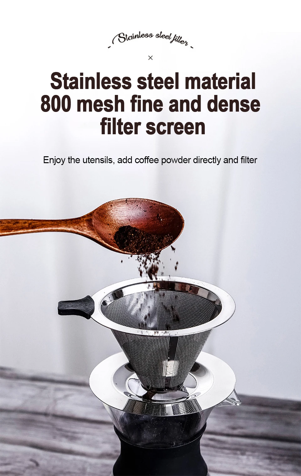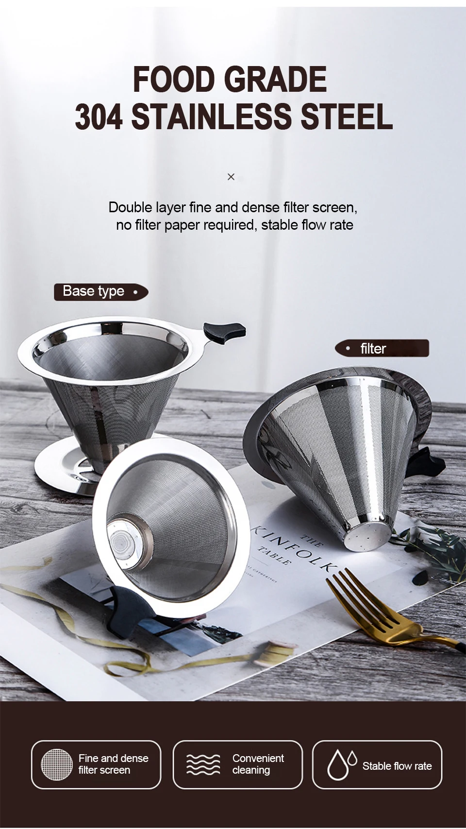 ?Cone café gotejador Feito de aço inoxidável 304 de alta qualidade, resistente ao calor, resistente à corrosão, resistente a ácidos, seguro e durável de usar.